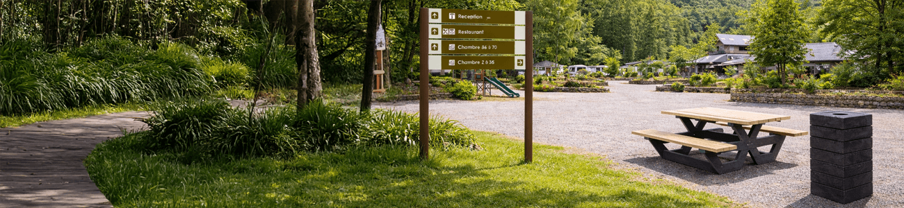 Que vous souhaitiez équiper un camping, un hôtel rural, une auberge, ou tout autre site accueillant du public, notre offre de mobilier urbain et signalisation extérieure vous permet de créer un environnement sécurisé, propre, clair et accueillant.