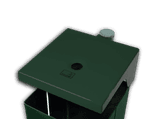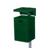 Poubelle verte (RAL 6005) à placer contre un mur ou sur un poteau de fixation. La poubelle est munie d'un verrou à 3 positions permettant de la vider. La poubelle est également disponible dans une version en acier inoxydable.